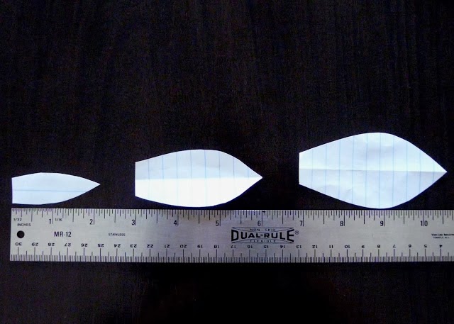 O primeiro passo é fazer um molde para suas pétalas. Corte oito (pequenas) pétalas 2,25 polegadas, seis (média) de 3 polegadas e 6 pétalas (grandes) pétalas de 4 polegadas. Não existem regras definidas para isso: