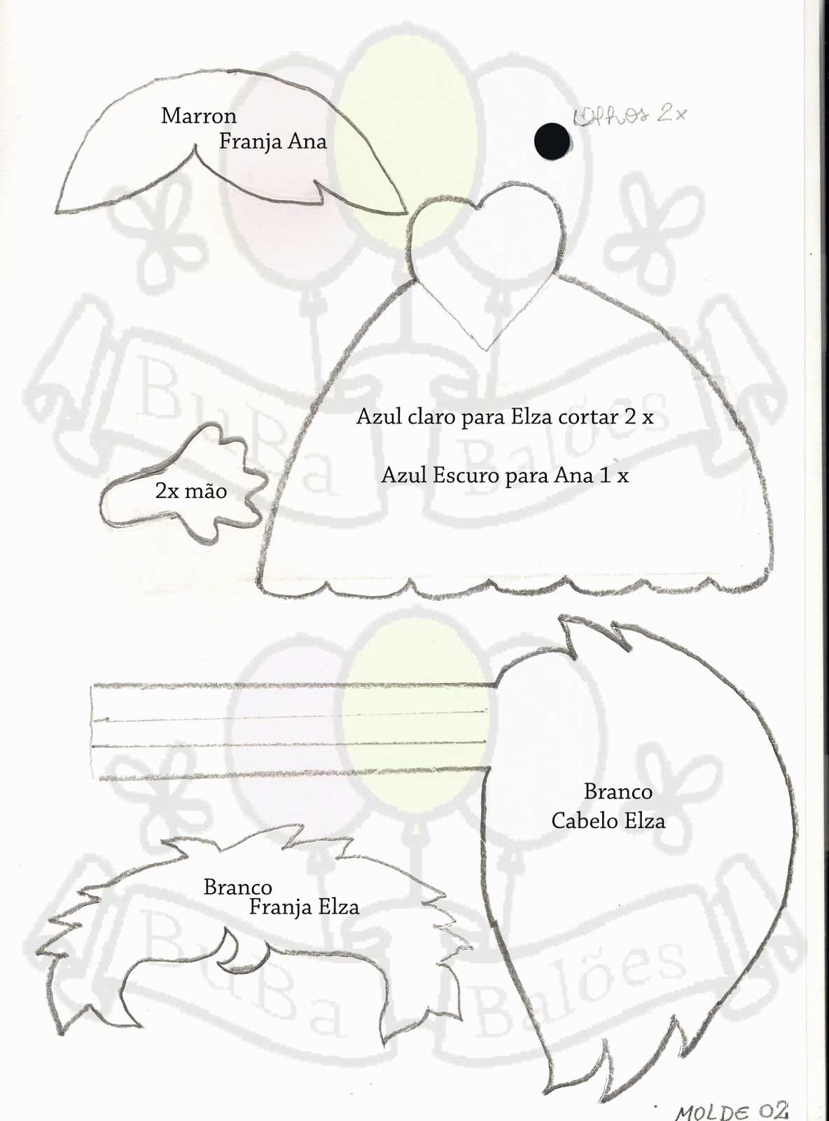 Para Ana você vai precisar de EVA nas cores: Marrom, cor de pele, roxo, azul escuro e preto;