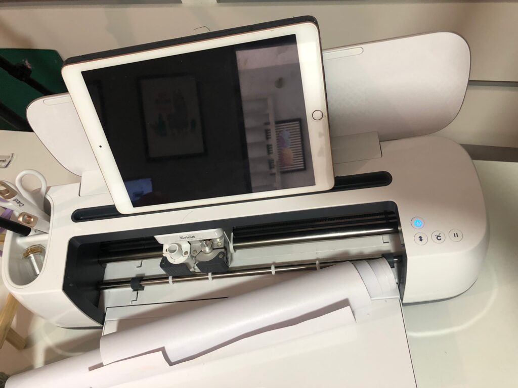 3º: Para cortar as letras, foi usada a Cricut Maker como máquina de corte. As letras saem perfeitas e redondinhas, do jeito que queríamos.