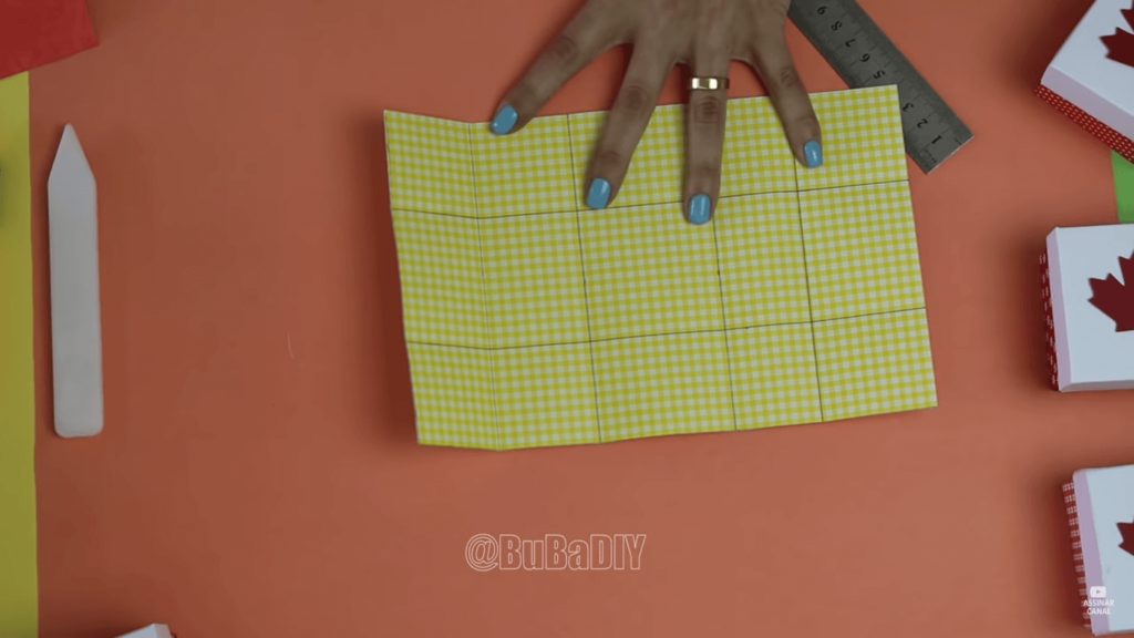 Agora você irá corta o retângulo maior e dobrar todas as marcações feitas. Use uma régua e um cartão para apertar a dobradura.