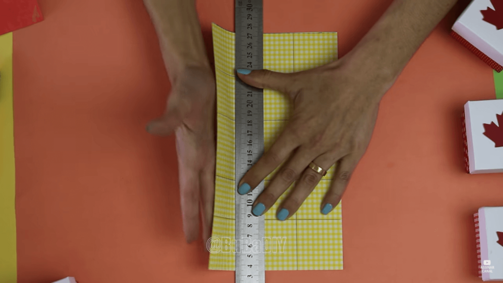 No vídeo, a caixinha que fizemos tem os lados medindo 6,2 cm e a altura medindo 4,5 cm.