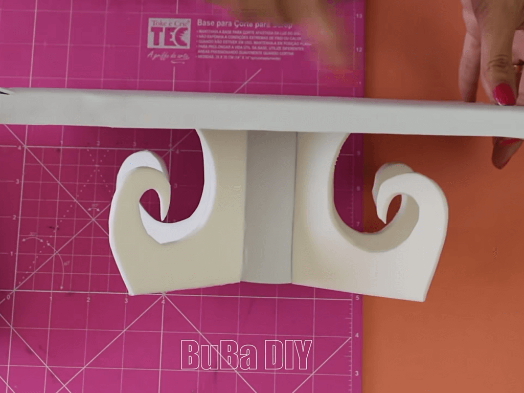 Agora, com a base e o pé já cortados, precisamos encapá-los. Nós escolhemos o EVA branco para essa bandeja, mas a cor pode ficar a seu critério.